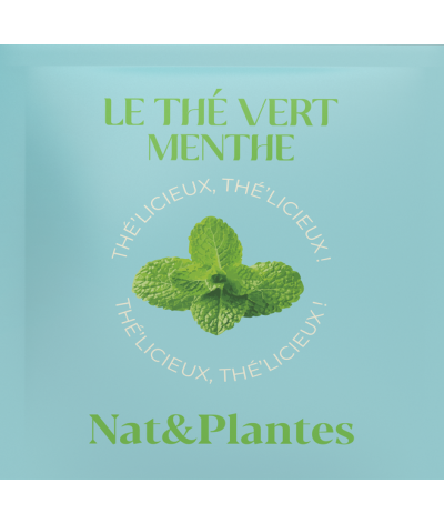 Thé Vert Menthe : Thé Vert feuille bio (50%), Menthe poivrée feuille (50%)