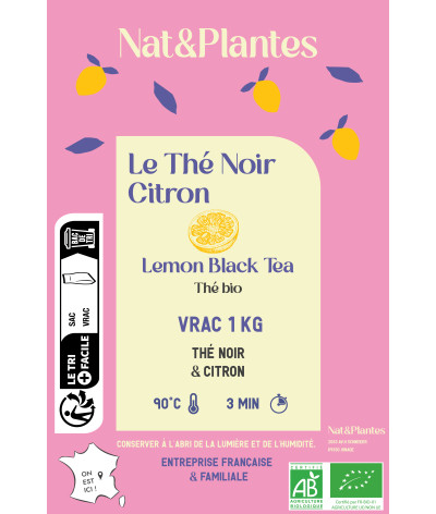 Ingrédients: Thé Noir BIO (75%), Citron BIO (10%), Arôme naturel de Citron BIO (5%).