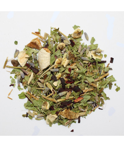 2 sachets pyramide Balade au Jardin : Citron BIO (45%) écorce, Verveine BIO (30%) feuille, Hibiscus BIO (20%) fleur, Lavande BIO (5%) fleur.