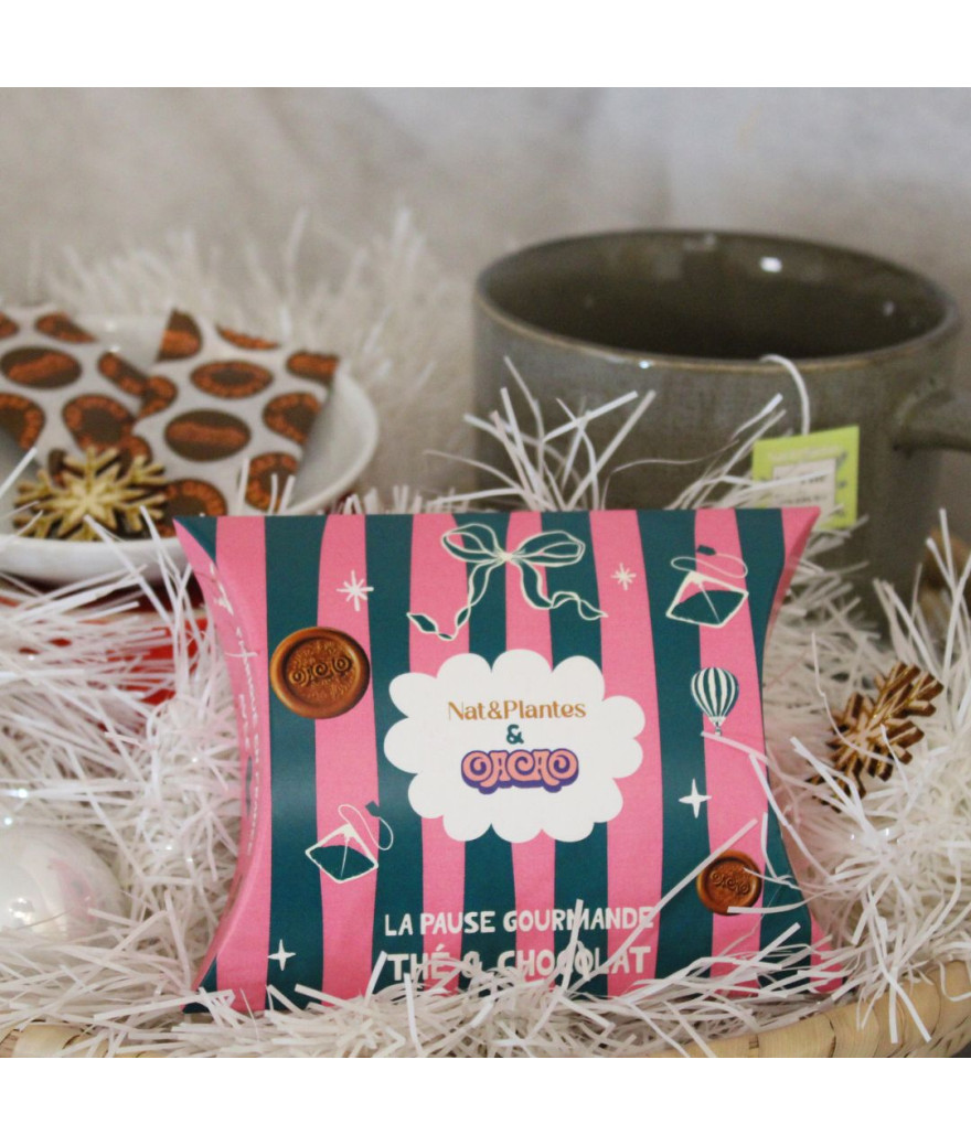 Étui de 2 sachets de thés et 2 Micalas Ganache Chocolat.